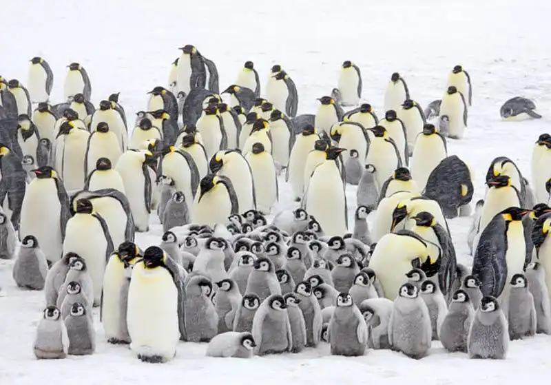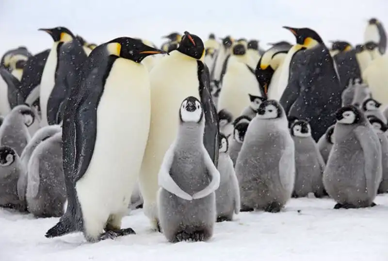 Птенцы императорского пингвина на острове Сноу Хилл в море Уэдделла, у берегов Западной Антарктиды, так похожи на героев мультфильма «Делай ноги». (PAL HERMANSEN / STEVEBLOOM.COM / BARCROFT MEDIA)