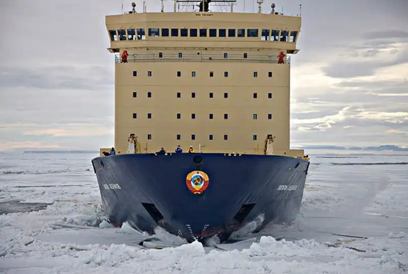 Несколько лет корабль «Капитан Хлебников» был единственным туристическим судном, на котором люди могли понаблюдать за пингвинами в их естественной среде обитания. Этот ледокол имеет супер-мощный корпус и особую форму, позволяющую ему эффективно прорезать лед. (PAL HERMANSEN / STEVEBLOOM.COM / BARCROFT MEDIA)