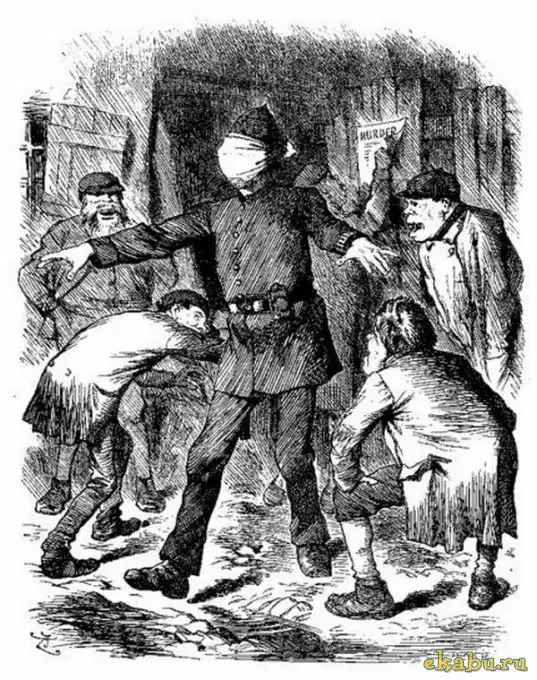 Карикатура из журнала Punch (сентябрь 1888), высмеивающая беспомощность полиции
