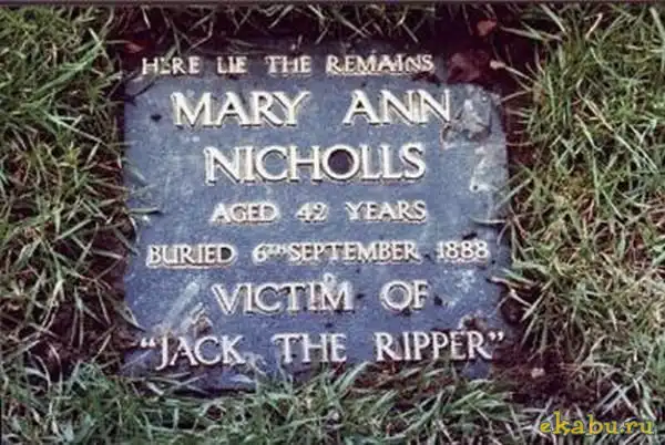 Расследование показало, что «первой ласточкой» Потрошителя стала Мэри Энн Николс 42 лет от роду. У нее был муж и пятеро детей, однако «Полли» (как звали ее подруги) спилась и последние годы жизни провела «на дне» общества. В ночь своей смерти ей не хватило денег на ночлежку. Она отправилась на улицу, заявив подругам, что скоро заработает искомые 4 пенса «с помощью своей новой шляпки».