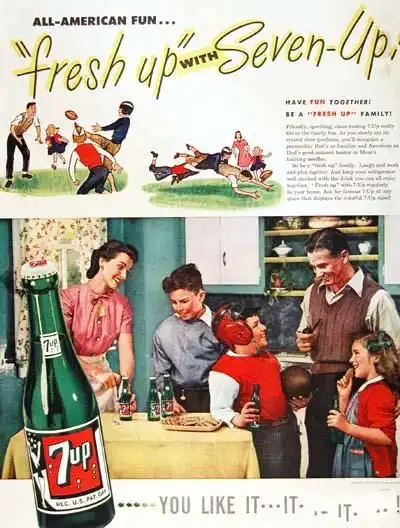 Напиток 7-up, изобретенный в 1920 году, содержал в своем составе литий — одно из лекарств, выписываемых сейчас от маниакально-депрессивного психоза. Изначально 7-up был выпущен как средство от похмелья благодаря содержанию цитрата лития. Он был выпущен почти сразу после паники на Уолл Стриит (Великая депрессия), и назывался в то время «Bib-Label Lithiated Lemon-Lime Soda» (Литиево-лимонная газировка). Название было вскоре изменено, но литий входил в состав напитка до 50-х годов прошлого века. Интересные мифы существуют относительно названия напитка. Одни утверждают, что в оригинальном рецепте было 7 компонентов, другие вспоминают атомную массу лития, которая равна семи.
