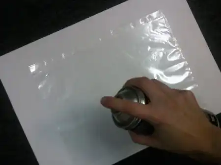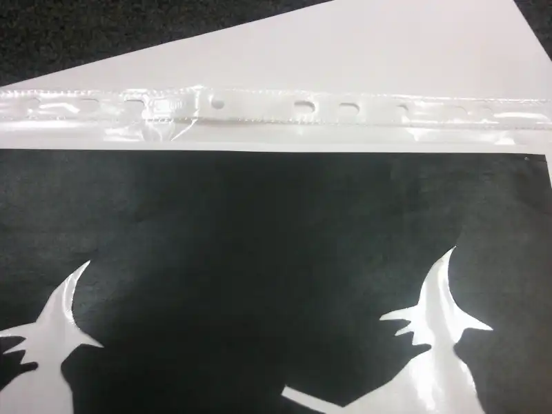 4. Если вы пользуетесь клеем-спреем, наносите его непосредственно на прозрачный файл и накладывайте поверх бумаги. Обычным канцелярским клеем, конечно, проще намазать бумагу, нежели полиэтилен.