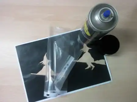 3. Приготовьте файл, клей и ваш рисунок. У нас нашелся клей в виде спрея, но вы можете взять любой. Главное: хорошенько закрепить бумагу в районе вырезанной зоны (иначе при сворачивании листа в трубочку "декор" будет некрасиво топорщиться).