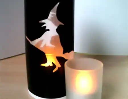 Примечания: Мы использовали светодиодные свечи, но вы можете взять любые другие источники света: хоть изготовить абажур для собственной настольной лампы. Еще можно просто распечатать картинку, вырезать силуэт, перевести его на черную цветную бумагу и вырезать - эффект одинаковый.