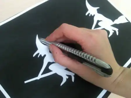 2. Вырежьте канцелярским ножом рисунок по контуру. В нашем случае это был силуэт ведьмы, летящей на метле.