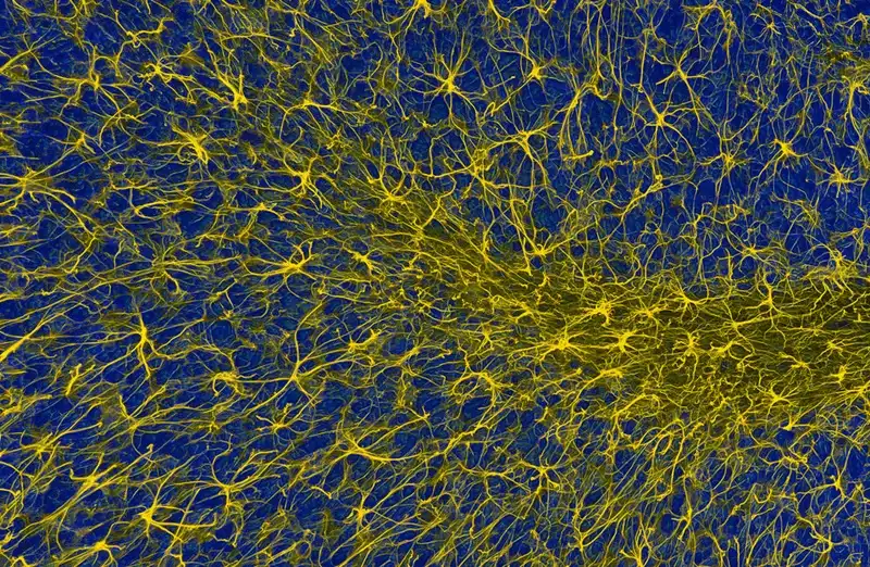 2. Увеличенное в 400 раз флюорисцентное фото глиальных клеток в мозжечке. Глиальные клетки предоставляют поддержку нейронов мозга. Фото было сделано Томасом Дееринком из Национального центра микроскопии в Университете Калифорнии, Сан-Диего