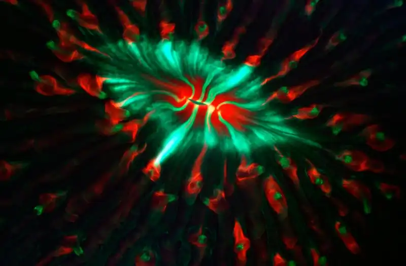 9. Джеймс Николсон из исследовательского института в Чарльстоне, штат Южная Калифорния, сделал этот снимок фунгии с естественными флюорисцентными протеинами вокруг рта. Снимок увеличен в 6 раз.