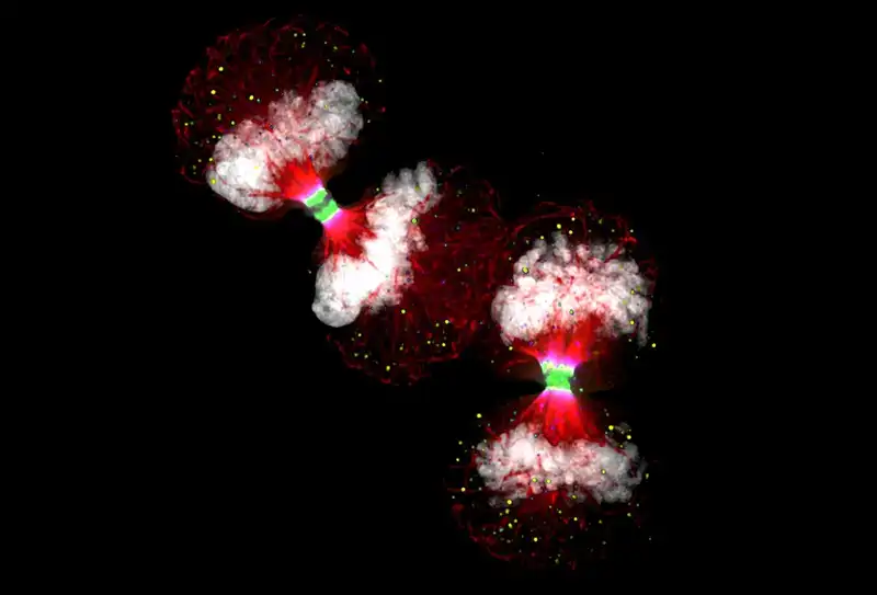 6. Две клетки рака человека перед разделением на четыре. Изображение увеличено в 100 раз. Оно заняло 11 место и было сделано доктором Полом Д. Эндрюсом из Университета Данди, Шотландия.