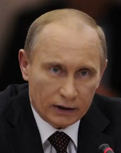В этом бы не было ничего особенного, если бы... не синяк под левым глазом Путина и обильное количество тонального крема на лице.