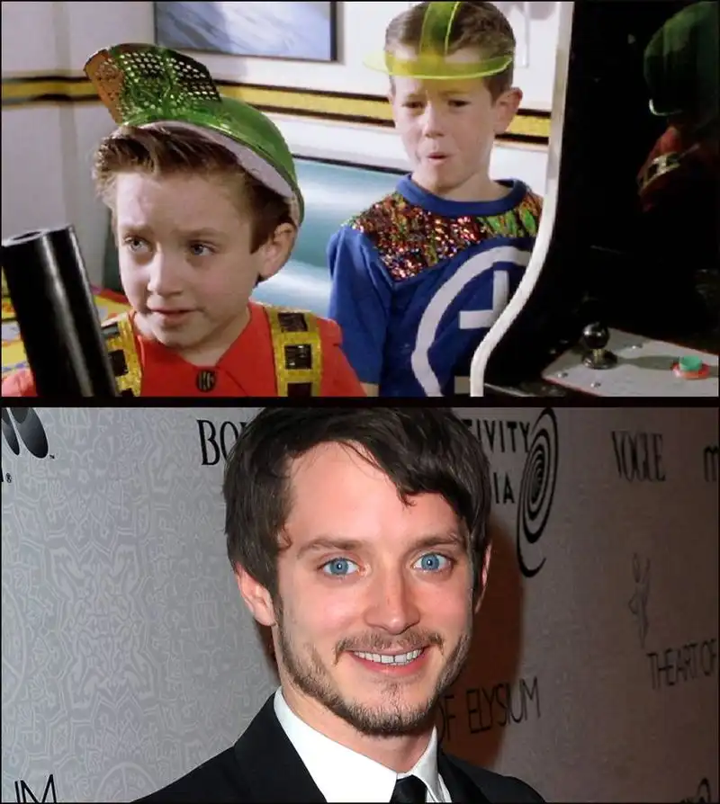 Актер Элайджа Вуд дебютировал во второй части «Назад в будущее» как «мальчик-игра» (вверху слева). У него была эпизодическая роль, но Вуд стал настоящей звездой после таких фильмов, как «Ледяной ветер» (1993), трилогии «Властелин колец» (1999-2003) и «Вечное сияние чистого разума» (2004). (Universal Studios, Getty Images)