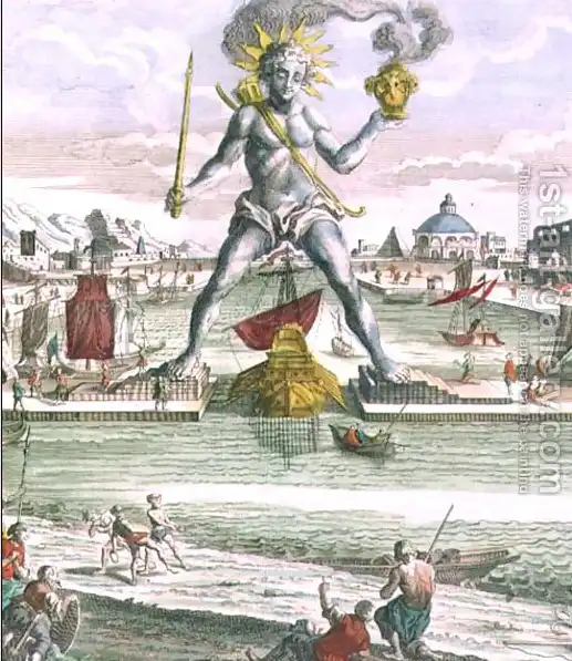 Части бронзового тела бога Солнца в течение столетий покоились на земле, рождая различные легенды. Так, в одной из них рассказывалось, что судна, направляющиеся в гавань, проплывали между ног гиганта.