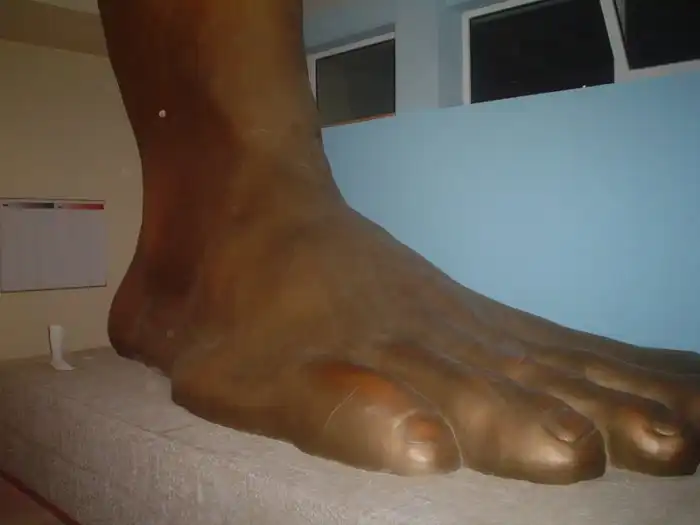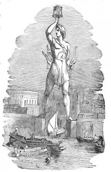 Народ Родоса с вожделением поглядывал на рукотворную земляную гору, на которой копошились подручные Хареса, тягая железяки. Гора все росла, с ней расходы, а толку все не было видно. И только когда убрали насыпь через 12 лет строительства, стало понятно, что 20 тонн металла (на изготовление грандиозного монумента потребовалось 500 талантов бронзы и 300 талантов железа (соответственно около 13 и около 8 тонн)). в землю не ушли и зря не пропали – красота открылась неописуемая. Про красоту знаем понаслышке, ведь те же историки, не утруждающие себя детальным описанием внешнего вида, с восторгом переносили охи-ахи на бумагу.