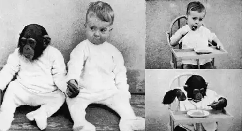 В 1931 году необычный эксперимент провела семья американских биологов — Уинтроп и Люэлла Келлог. Прочитав статью о печальной судьбе детей, росших среди животных — волков или обезьян, биологи задумались: а что, если сделать наоборот — попытаться воспитать обезьяньего детёныша в человеческой семье? Не приблизится ли он к человеку? Сначала учёные хотели переселиться со своим маленьким сыном Доналдом на Суматру, где нетрудно было бы среди орангутанов найти компаньона для Доналда, но на это не хватило денег. Однако Йельский центр по изучению человекоподобных обезьян одолжил им маленькую самку шимпанзе, которую звали Гуа. Ей было семь месяцев, а Доналду — 10.