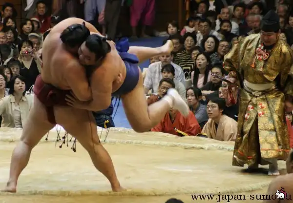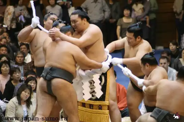 и , наконец , самый эффектный и редкий - иппондзой , бросок противника через себя захватом своими руками его руки , в новейшей истории сумо он удался только Кайо (170 кг) в поединке против Мусасимару (220 кг).