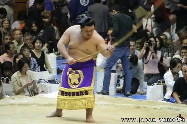 Затем следует сама цереиония , во время которой и производятся знаменитые сико , мощные удары ступнями о дохё , призванные изгнать злых духов.