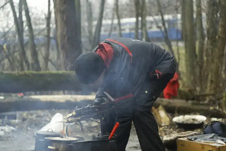 "Чистота залог здоровья" говорит Борис демонстрируя отмытые до блеска ножи с вилками, он очень гордиться тем что в лагере такой порядок. Вообще язык как то не поворачивается назвать этих людей бомжами. Нет никакой вони,пьяных тел и прочих сопутствующих элементов. Одет Борис хоть и в потрепанную но чистую одежду, выбрит,"даже одеколон имеется" - усмехнулся он в ответ на наше удивление.