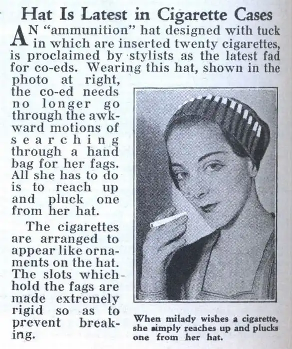 С такой шляпой вам не надо будет таскать сигареты в руке или в сумочке.
