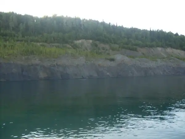 Южная оконечность карьера разделена на две бухты. Из правой вытекает речка, а также в ней, на глубине около 17 метров, затоплен автомобиль "Жигули".