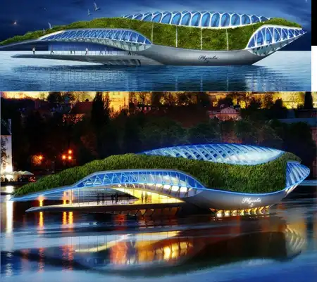 Физалия – инновационный научный архитектурный прототип судна, цель которого – удовлетворять потребности плавающих очистительных станций нового поколения с целью сделать популяцию чувствительной к экологическим инструментам без серы и углерода. Концепция судна-амфибии – наполовину сухопутная, наполовину водная плавающая агора, которая не только экономит воду, заботясь об экологии, но и разрабатывает стратегически разумные решения для речной сети. Это судно способствует окружающей среде не только экономя воду, вновь наполняя грунтовые воды, контролируя рециркуляцию домашней, промышленной и дождевой воды, очищая сельскохозяйственные загрязнения (нитраты и прочие удобрения и вещества для растений), опресняя морскую воду; но и развивая водный речной туризм и коммерческий транспорт, водный спорт, сельскохозяйственные системы ирригации, производство электричества с помощью воды, защиту от наводнений и многое другое.