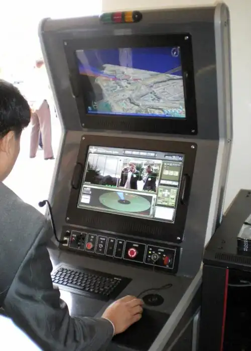Пользователи могут контролировать действия и настройки прибора посредством специального ПО. Имеется и отдельная независимая консоль управления, весьма похожая на навороченный игровой автомат. Однако игра здесь ведется не на жизнь, а на смерть. SGR-1 -- лишь один из компонентов охранной системы ISSS, разработанной все тем же Samsung Techwin. Наряду с "робокопом", в нее входят камеры с большим углом обзора, интеллектуальные поворотные камеры для отслеживания целей, а также мобильные группы быстрого реагирования. Для общения с живыми военными аппарат снабжен микрофоном и системой громкоговорителей -- таким образом могут осуществляться обмен паролями и отзывами, передача команд и пр. При несовпадении пароля с образцом робот способен отреагировать очередью из штатного пулемета К-3 (при условии соответствующей комплектации и при наличии боезапаса).