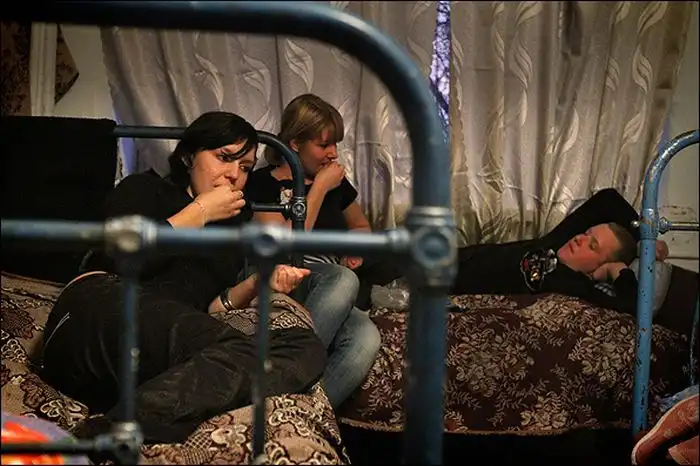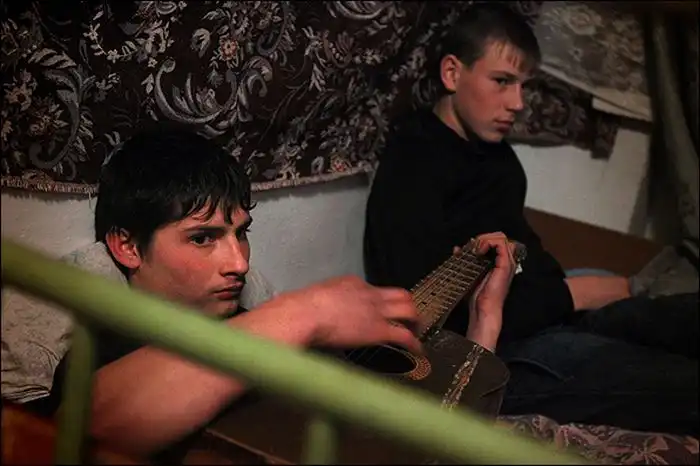 Учебному заведению явно не до "евроремонтов". В комнатах – железные кровати, нет компьютеров и даже телевизоров, но довольно весело – почти в каждой есть свой гитарист.