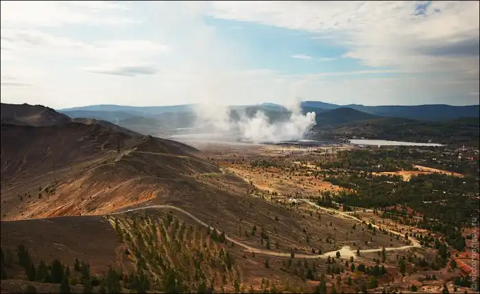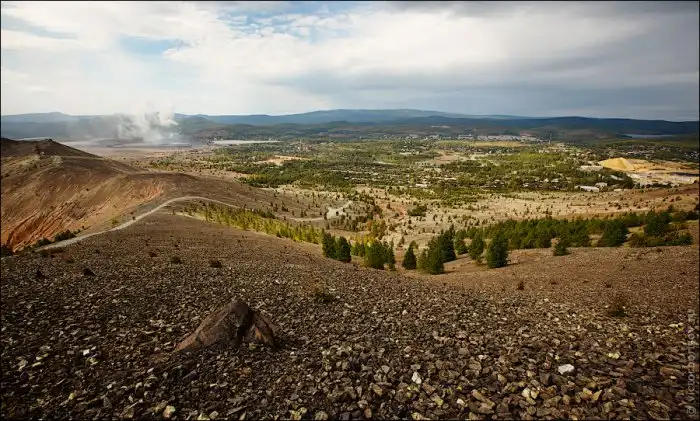 За 100 лет комбинат успел выжечь и засыпать шлаком огромную территорию вокруг себя. За год работы комбинат выкидывает в атмосферу более 180 тонн газов, которые выпадают в виде кислотных дождей на прилегающую территорию.