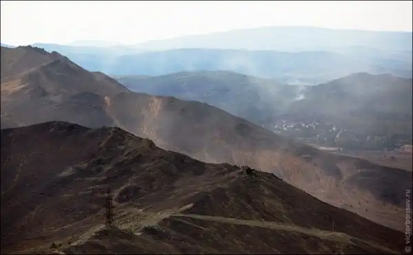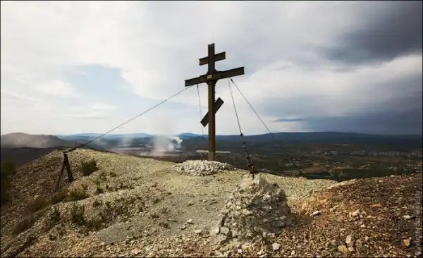 Гора, находящаяся на границе города, полностью потеряла лесной покров. На Лысой горе в Карабаше нарисована надпись «Спаси и сохрани». Над надписью стоит железный крест из кусков швеллера. Мы поднимемся на нее попозже.