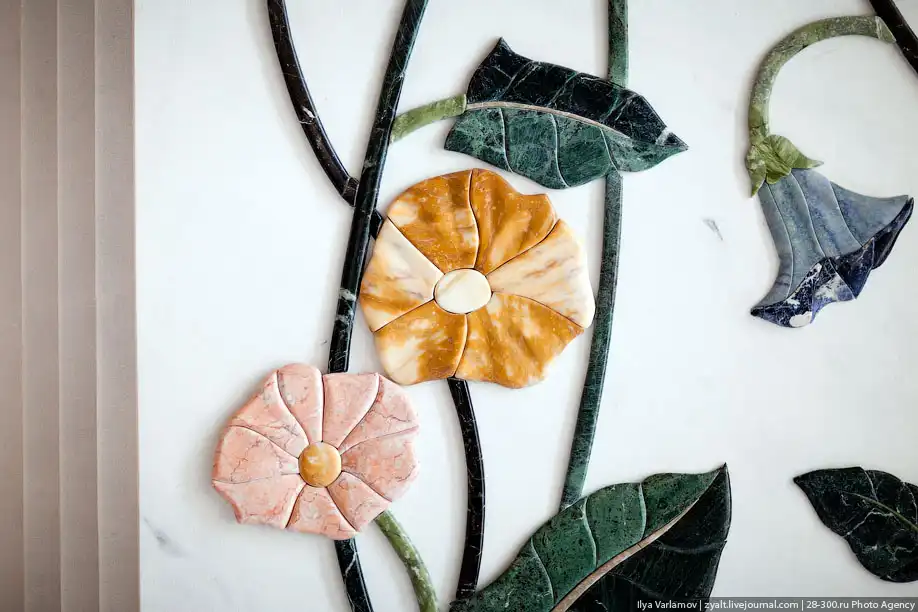 Стоит отметить, что огромный цветочный узор - это мозаика из разных пород мрамора.