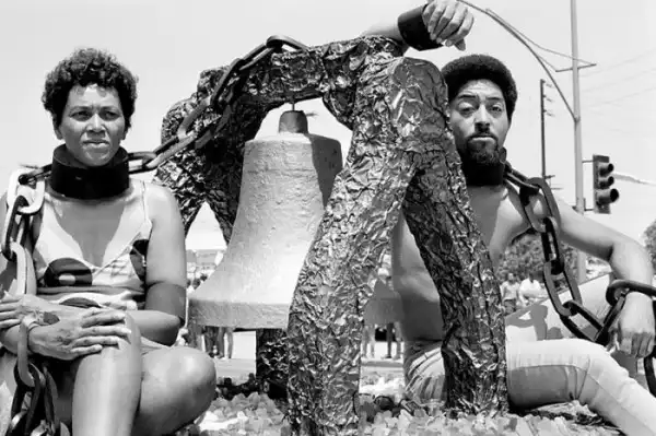 Эти молодые американцы участвуют в акции протеста с цепями в Лос-Анджелесе. В 1965 году здесь прошли крупные беспорядки, демонстрантами выступало темнокожее население, протестовавшее против превышения полномочий полицией. (© Dennis Stock/Magnum Photos)