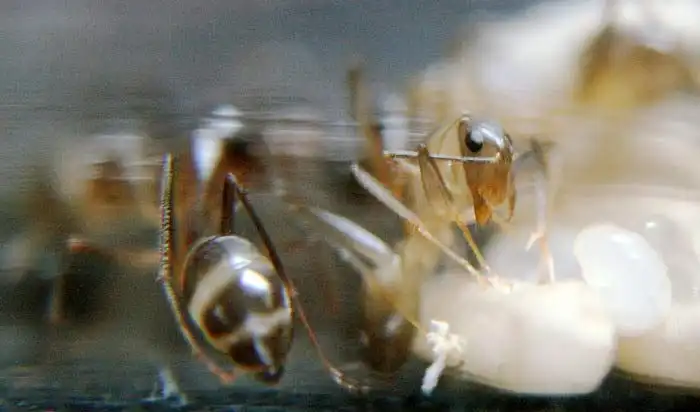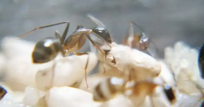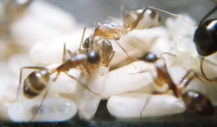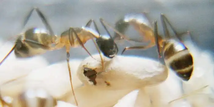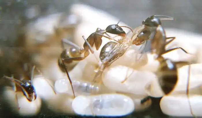 но это еще не всё, только что родившийся муравей еще не может сам двигаться, у него скомканы ножки и усики