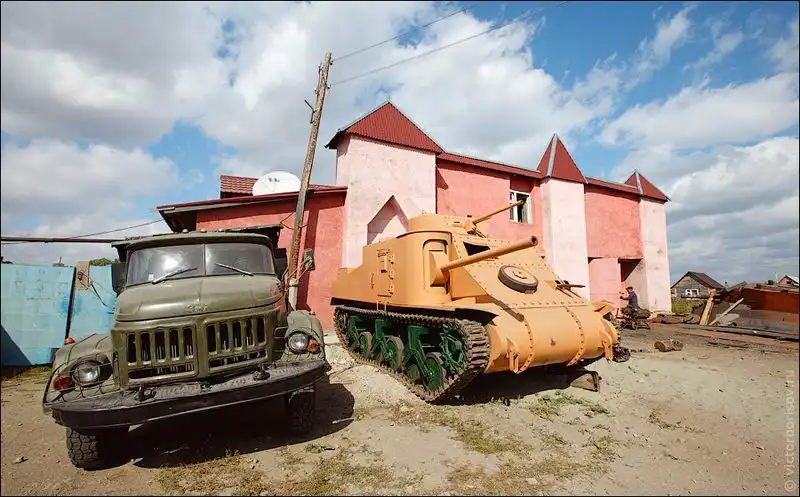 Все танки деревенского умельца ничем внешне не отличаются от настоящих, вот только оружие на них стоит не боевое.