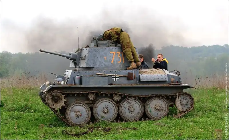 Также его танки используют для реконструкции военных действий. Например, в мае прошлого года одна такая реконструкция проходила под Ступино, рядом с Белопесоцким монастырем. Это — чешский танк «Прага» Pz-38.