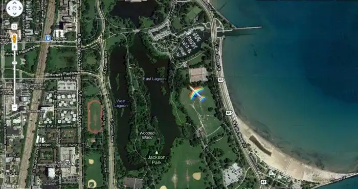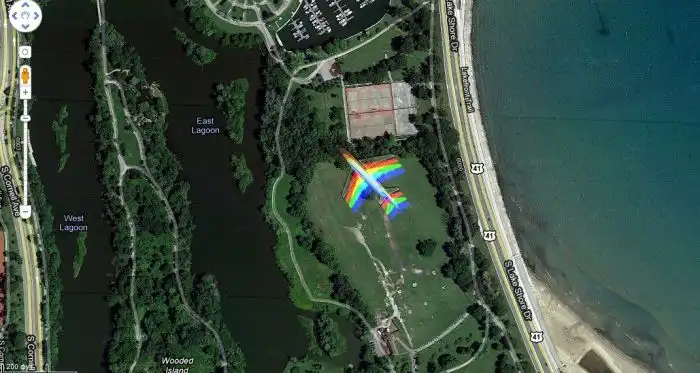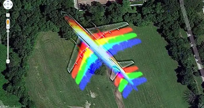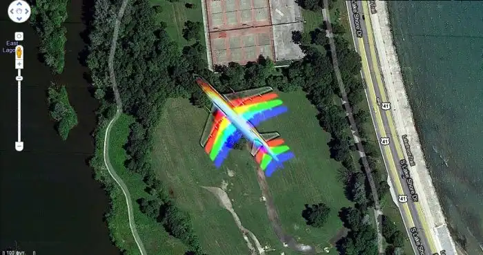 Самолет-радуга на карте Google