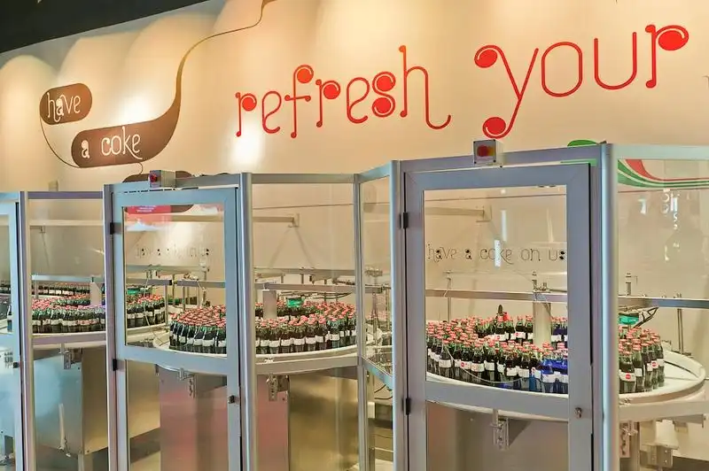 Здесь производятся сувенирные бутылки Кока-Колы, которые можно взять бесплатно и нигде нельзя купить.
