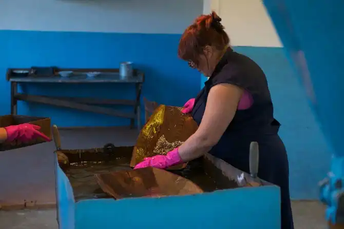 Доводка золота. Камешки и мусор убирают кисточкой.