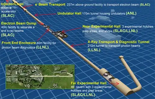 Примечательно, что идея о создании такого ускорителя возникла еще в 1992 году, и в качестве базы для «разера» рассматривался Стендфордский линейный ускоритель. После многолетних сомнений, споров и исследований строительство аппарата началось лишь в 2006 году. Пробный пуск LCLS состоялся в апреле 2009 года, а по прошествии нескольких месяцев уже проводились первые исследования.