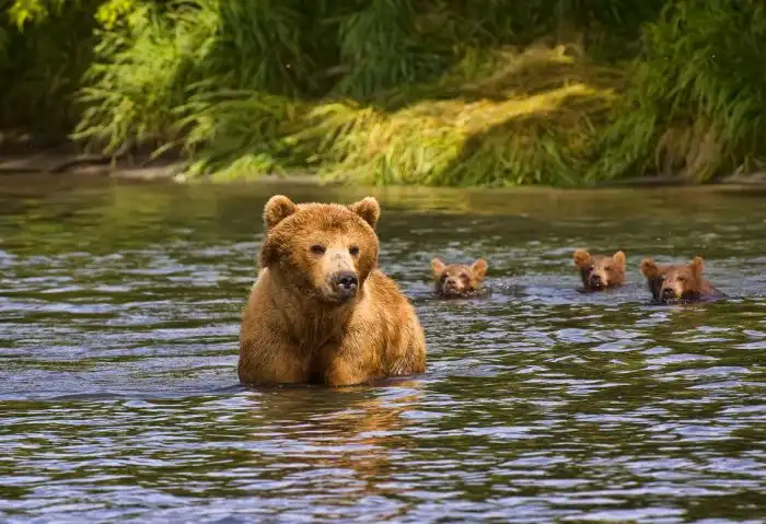 Взрослые,опытные медведицы с первых дней жизни обучают медвежат выживанию в суровых условиях. Без команды медвежата в воду не заходили, а вот у молодых медведиц всё было наоборот и порой печально заканчивалось