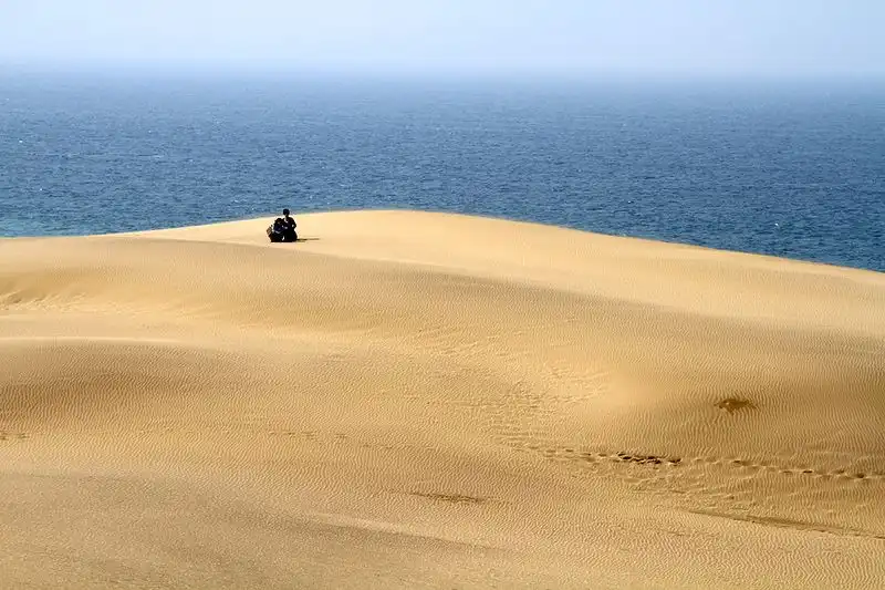 Песчаная дюна Тоттори раскинулась на 16 км вдоль побережья Японского моря (ширина 2 км.)... и если бы не высоченные барханы и возвышенности, можно было бы предположить, что это просто огромный пляж...