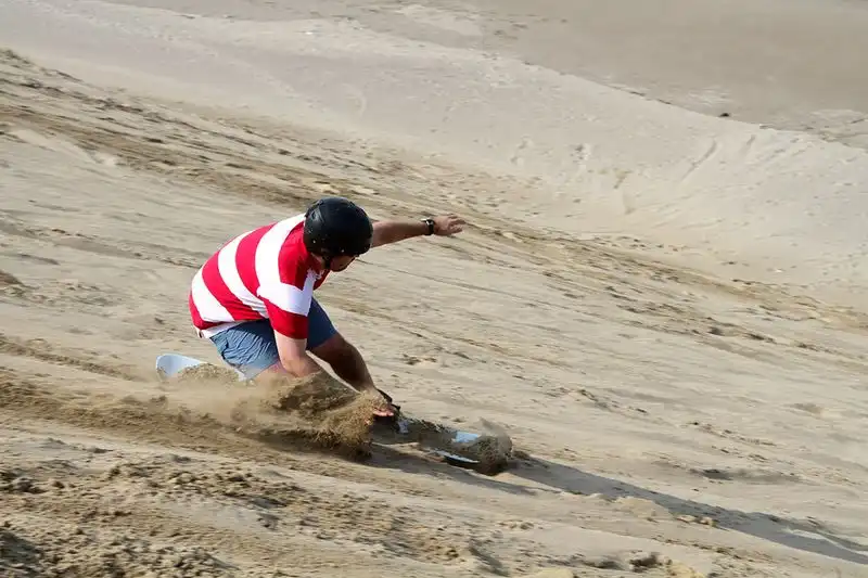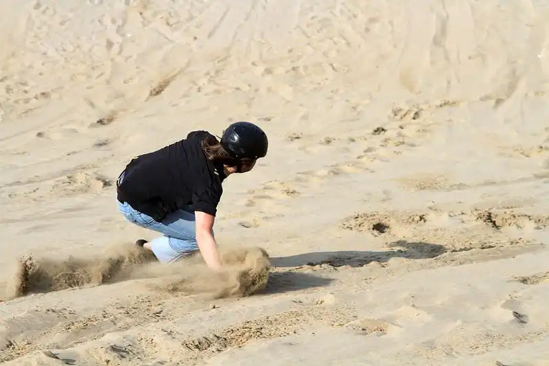 К радости сильного пола нашей группы нам предложили покататься с песчаных гор на доске… Сендбординг понимаешь ли… Доехать до конца получалось не всегда, но удовольствия масса…