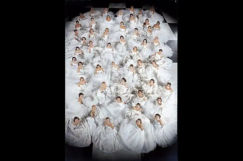 7. 50 участниц конкурса позируют для журнала «Life Magazine» в белых вечерних платьях в честь 30-летия конкурса в 1956 году. Хотя первый конкурс прошел в 1921 году, во времена Великой Депрессии конкурсы не проводились. (Yale Joel / Time Life Pictures / Getty Images)