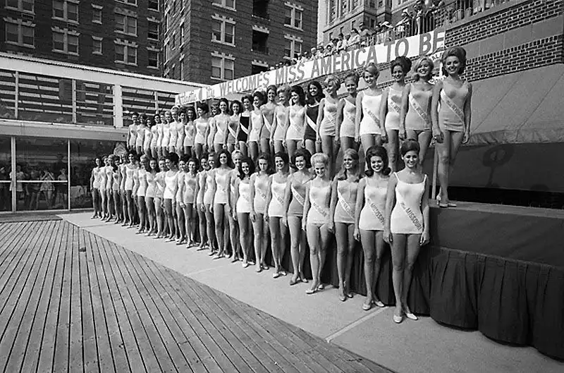 10. Участницы в купальных костюмах перед началом конкурса. (Bettmann / Corbis)