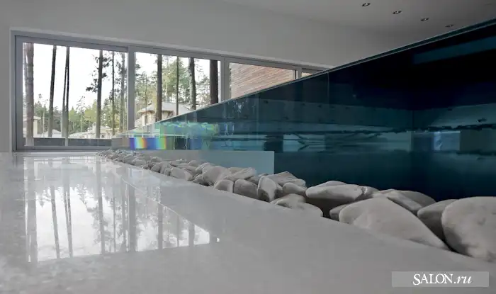 Участок обнесен забором, который, как и витражи на фасаде, сделан из тонированного стекла Planibel Grey