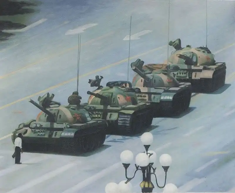 13. Картина, копирующая знаменитый снимок 1989 года, когда произошли знаменитые события на площади Тяньаньмэнь.