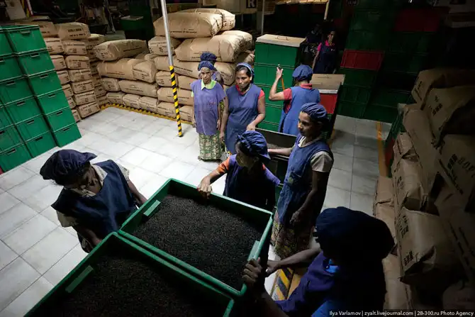 Здесь чай сортируют по размеру чаинок