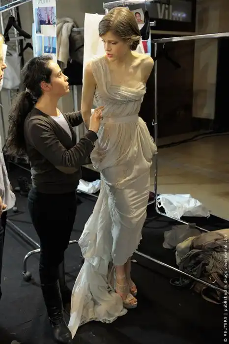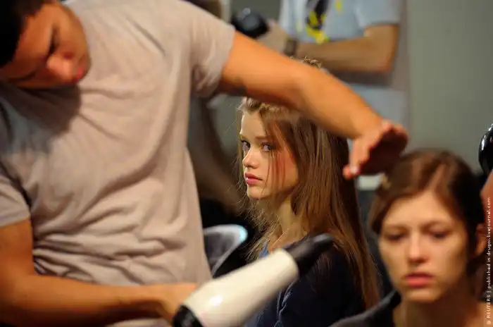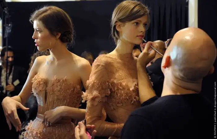 Время пришло и за дело берутся те, кто работает на показе — визажисты, парикмахеры, портные, помощники модельера, организаторы шоу. На backstage всегда легкая суета, но каждый знает свою работу и зачем он её делает.
