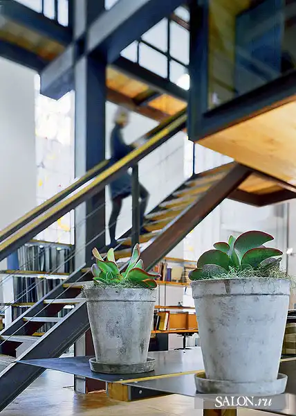 Главное достоинство этой постройки - потрясающая высота потолков. Благодаря ей Джордж создал интереснейший архитектурный проект. Дом двухэтажный: на первом этаже находится офис рекламного агентства, принадлежащего семье, на втором - жилые помещения.