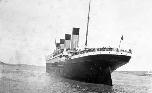 12:30 — остановка в Квинстауне для взятия на борт 120 пассажиров и почты; один член команды дезертирует с «Титаника».
