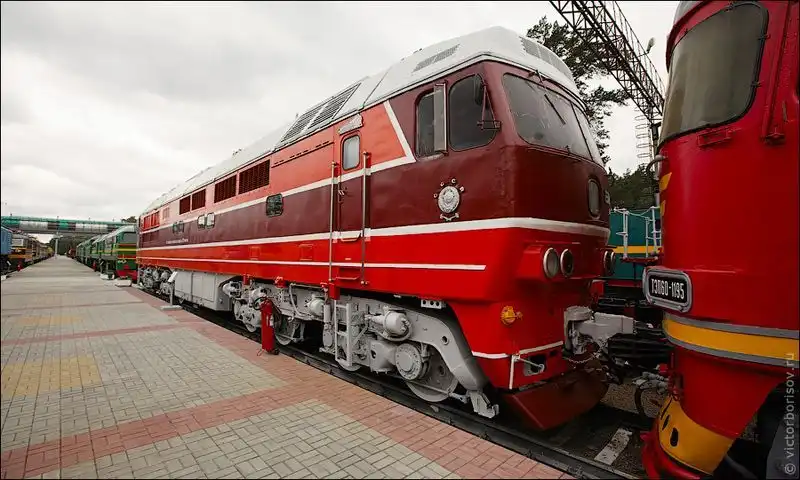 Про этот тепловоз хочется рассказать чуть подробнее. Это опытный пассажирский тепловоз, производившийся в СССР с 1988 по 1989 год на Коломенском тепловозостроительном заводе. Всего построено 2 тепловоза данной модели. В этом музее находится самый первый из них. Второй, находящийся в музее в Санкт-Петербурге знаменит тем, что на нём установлен мировой рекорд скорости среди тепловозов — 271 км/ч. Прилагаю видео установления рекорда.