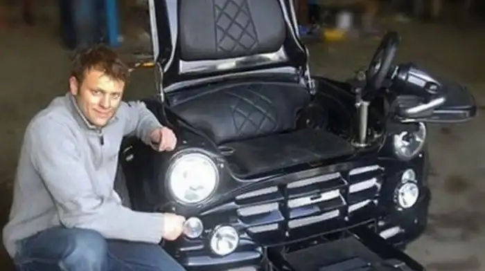 Это на самом деле не автомобиль, а компьютерное кресло. Сделано оно из капота Mini Cooper.