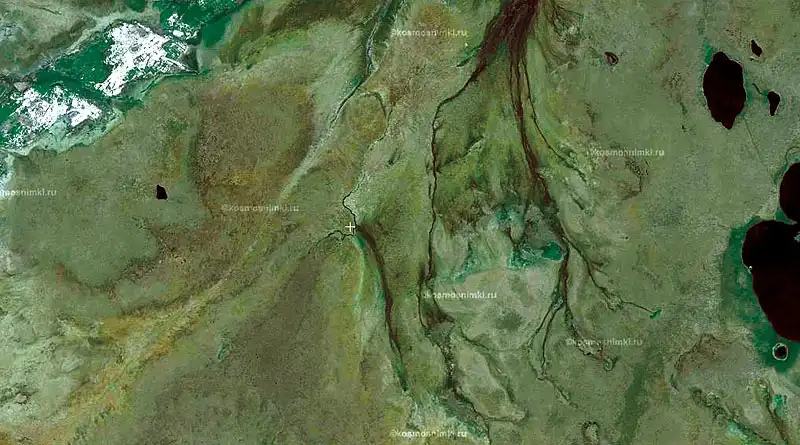 Навигатор точно вывел нас к тому месту, где Порусья выходит из мха на поверхность. И мы стоим в изумлении. Вокруг какое то нечеловеческое место. Мертвый лес тысячами стволов тыкается в серое небо. Он похож на ломаную графику сейсмографа при землетрясении. Аспидно черная вода быстро течет на север. Болотный газ пузырится в первом окне реки. Изогнутые коренья, бороды мха на сухих соснах, следы куньих и огромный орлан белохвост в небе.